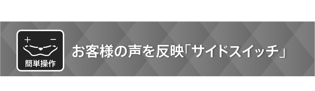 どんな体勢でも簡単に使用できるようにサイドスイッチを採用。 毎日使ってもらいたいから、操作性にこだわりました。