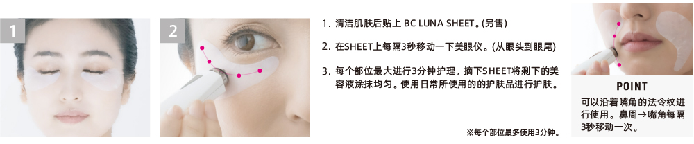 没有办法好好护理到的眼周的细小部位也能进行使用。针对重点部位使用最小的能量有效活动肌肉。