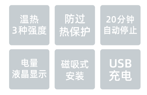 使用了导热速度为铜的十倍,诺贝尔奖授奖材质「石墨烯」。瞬间发热,20分钟温暖全身。