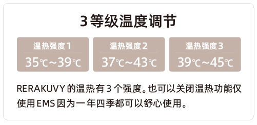 RERAKUVY采用了两种不同的波形相结合,减轻EMS特有的刺痛感,能够护理到难以抵达的深层肌肉。