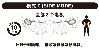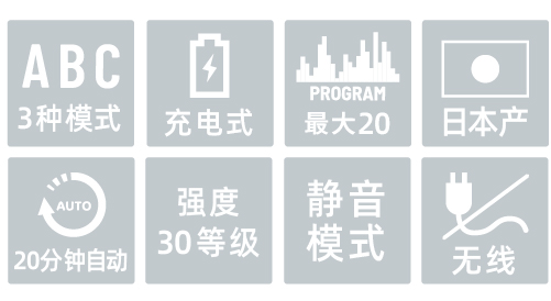 20分钟的程序内设置了12种刺激方式放置肌肉对EMS的刺激产生疲劳。但是不止锻炼,也包含了紧致等使紧绷的肌肉变柔软的瘦身沙龙的程序。