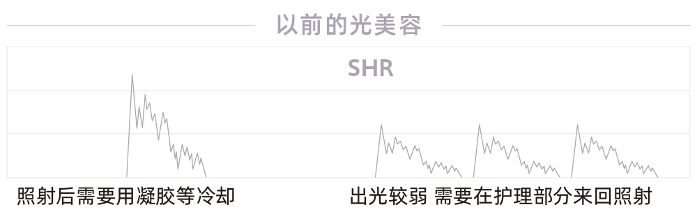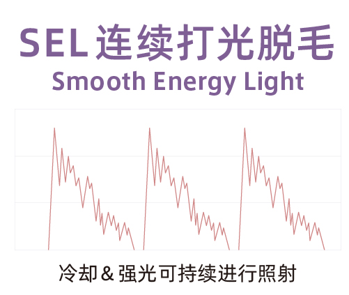 高强度的打光集中连续输出,采用了独有的能高效进行脱毛处理的方式。因为是冷却性能较高的产品,才能长时间进行高能量护理。无停顿,无需等待,5分钟就可以进行全身脱毛。